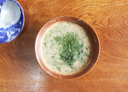 うちの冷やし汁は、水と味噌とゴマと大葉だけです。