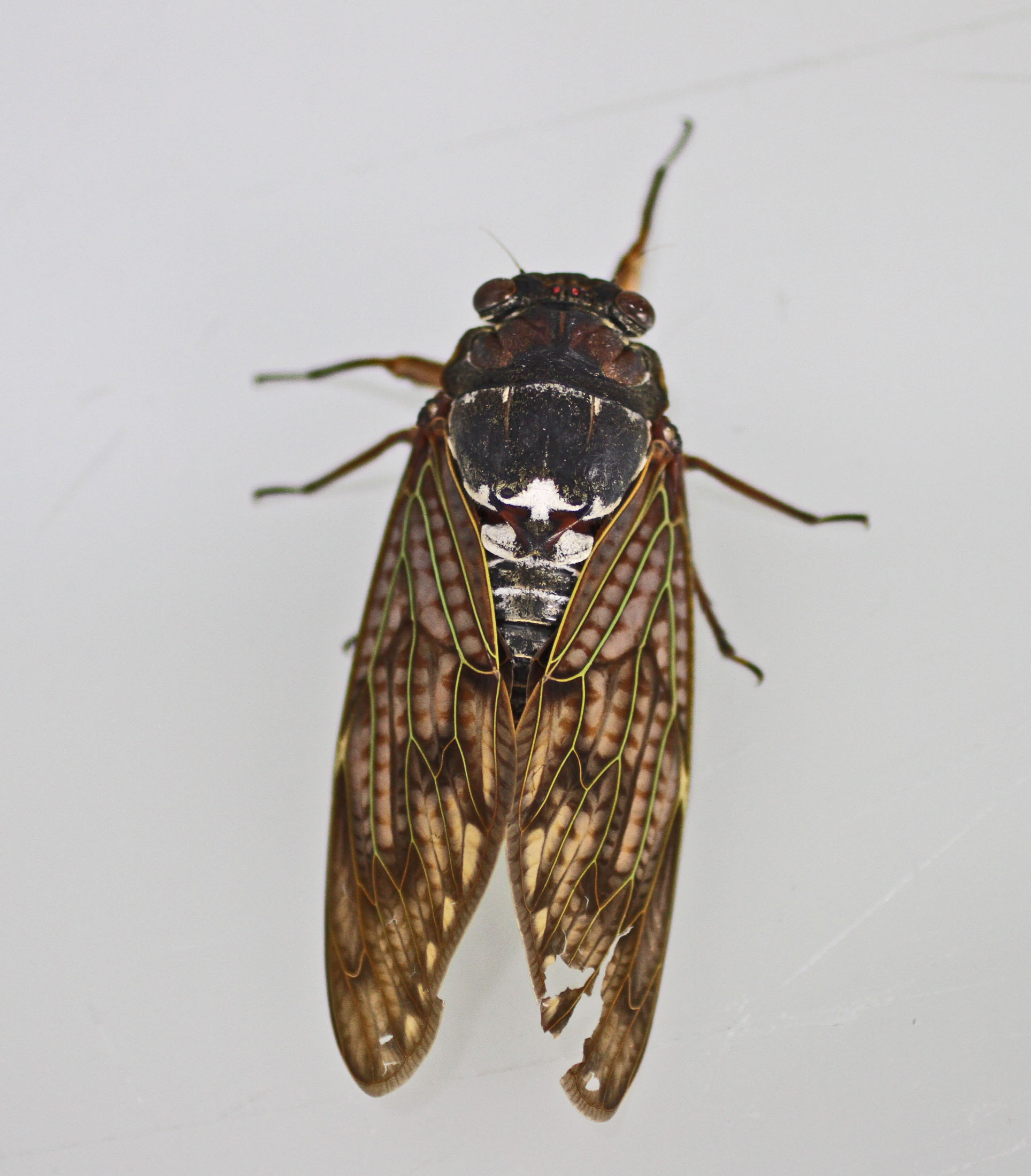 虫の息のアブラ蝉。指を持っていくと必死にしがみ付いて