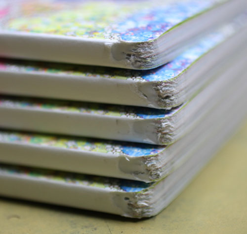 中綴じの小口バラバラの「いいかげん製本」見本も