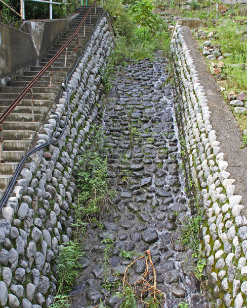 思い始めたその先に、急斜面にへばり付く様に散見する家々。