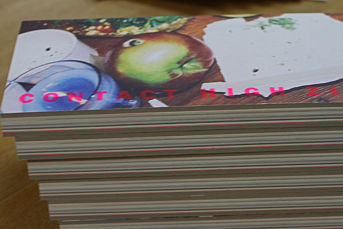 CONTACT HIGH ZINE 2015 年 9 月 18 日 金曜日 コデック装。ボールは4mmの厚さ、全体で2センチの厚さがあります。 背中は黄色の糸かがり 見開きサイズで30センチ、30センチのLPサイズです。 あすの東京ブックフェア―では額も売るそうですから毎日、日替わりの写真集です。