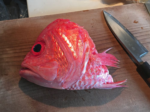 これを二枚におろしてもらって、半身、刺身で他はアラ炊き。
