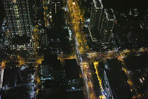 空から見下ろす街並み、空港から市内に向かう建物、20年前とは