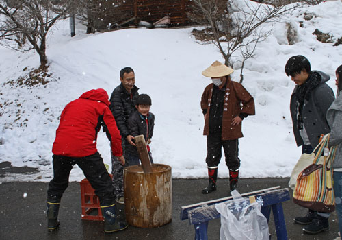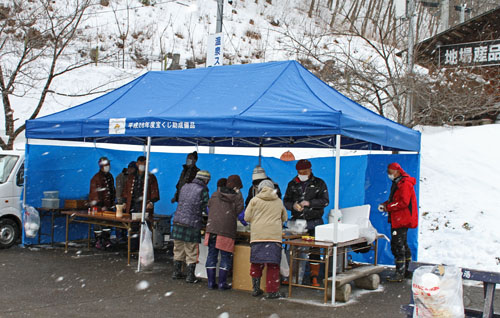 15時になって豚汁とお餅を振る舞ってくれました。お昼も食べたので